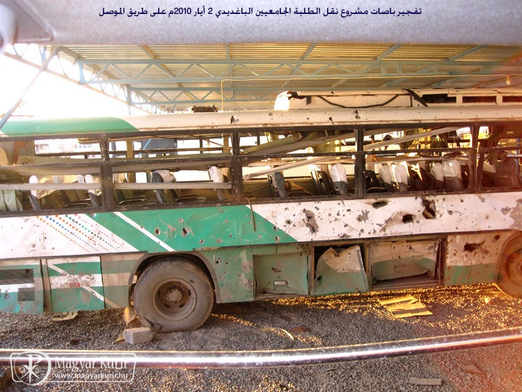 – 2010-ben történt. Mivel Karakosban nem volt egyetem, a szír katolikus fiataloknak Moszulba kellett járniuk az ottani egyetemre. Akkoriban ez nem volt veszélytelen, hiszen megölhettek bennünket. A püspök elhatározta, buszokat vásárol, hogy a diákok mindennap Moszulba utazhassanak. Huszonöt buszt szereztek be erre a célra. 2010. május 2-án együtt indultunk Moszulba. Reggel fél hétkor, két ellenőrző pont között az összes buszt felrobbantották. Összesen több mint ezerötszáz diák utazott a buszokon. Amikor a bombák robbantak, hallottam a detonációt, és éreztem, hogy a busz ablakainak szilánkjai a testem minden részét megsértik, különösen a szememet és a karjaimat. Emlékszem, hogy Máriához könyörögtünk, hogy segítsen meg bennünket. A húgommal egy buszon utaztunk, aki elesett, azt hittem, meghalt. Felkaroltam, és levittem őt a buszból, majd két óra múlva kerültünk be a kórházba. Kilenc műtéttel hozták helyre az orromat, kettővel a szememet, eggyel a kezemet és egy másikkal a gyomromat. Hasonló történt a húgommal is.