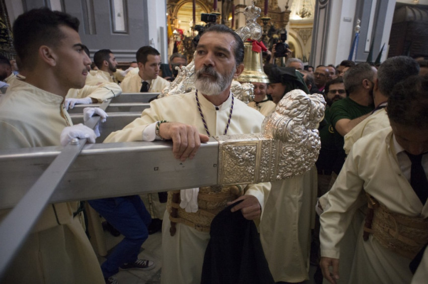 A spanyol színész és rendező minden évben részt vesz szülővárosában, Malagában a nagyheti körmeneteken, az egyik helyi katolikus világi társulat tagja. 2011-ben úgy nyilatkozott a francia Paris Match magazinnak: „Katolikus vagyok, de úgy 16-17 éves koromban, amikor elkezdtem igazán átgondolni a dolgokat, azt mondtam magamnak: »Nem, mindez teljesen lehetetlen.« Majd elértem egy olyan korba, amikor elkezdtem igényelni a spiritualitást. Csak annyit kellett tennem, hogy Jézus egyetlen szavára hagyatkozzam, egy nélkülözhetetlen szavára, amelyet nem lehet megkérdőjelezni, ez pedig a szeretet.”