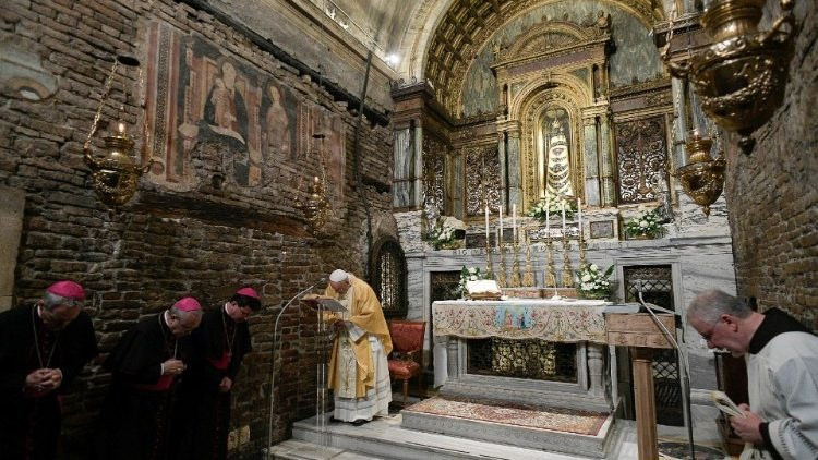 A mai Szent Ház oltárlapja fölött latin felirat hirdeti a János-evangélium híres karácsonyi szavait: „Az Ige testté lett”. Egyetlen szót tettek hozzá: „itt”. A szöveg latinul így hangzik: „Hic Verbum caro factum est”, vagyis „Itt testesült meg az örök Ige”. Ez a rövid, de sokatmondó szó meghatja a zarándok szívét, és valójában Loreto ezért lett Itália legjelentősebb kegyhelyévé – immár több mint hétszáz éve. Aki eljön ide, hozza el magával a Szentírást, olvassa el János evangéliumának előszavát, a híres prológust, és Lukács evangéliumából élje át azt a beszélgetést, mely a legfontosabb Isten és az ember történetében. Ebből a beszélgetésből született Urunk, Jézus, az Isten és Mária Fia, aki megváltotta a világot.